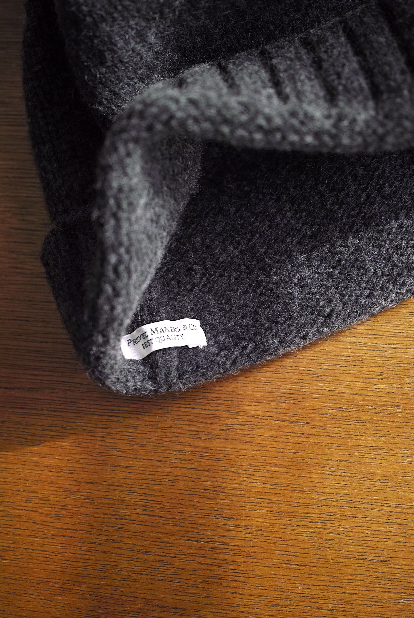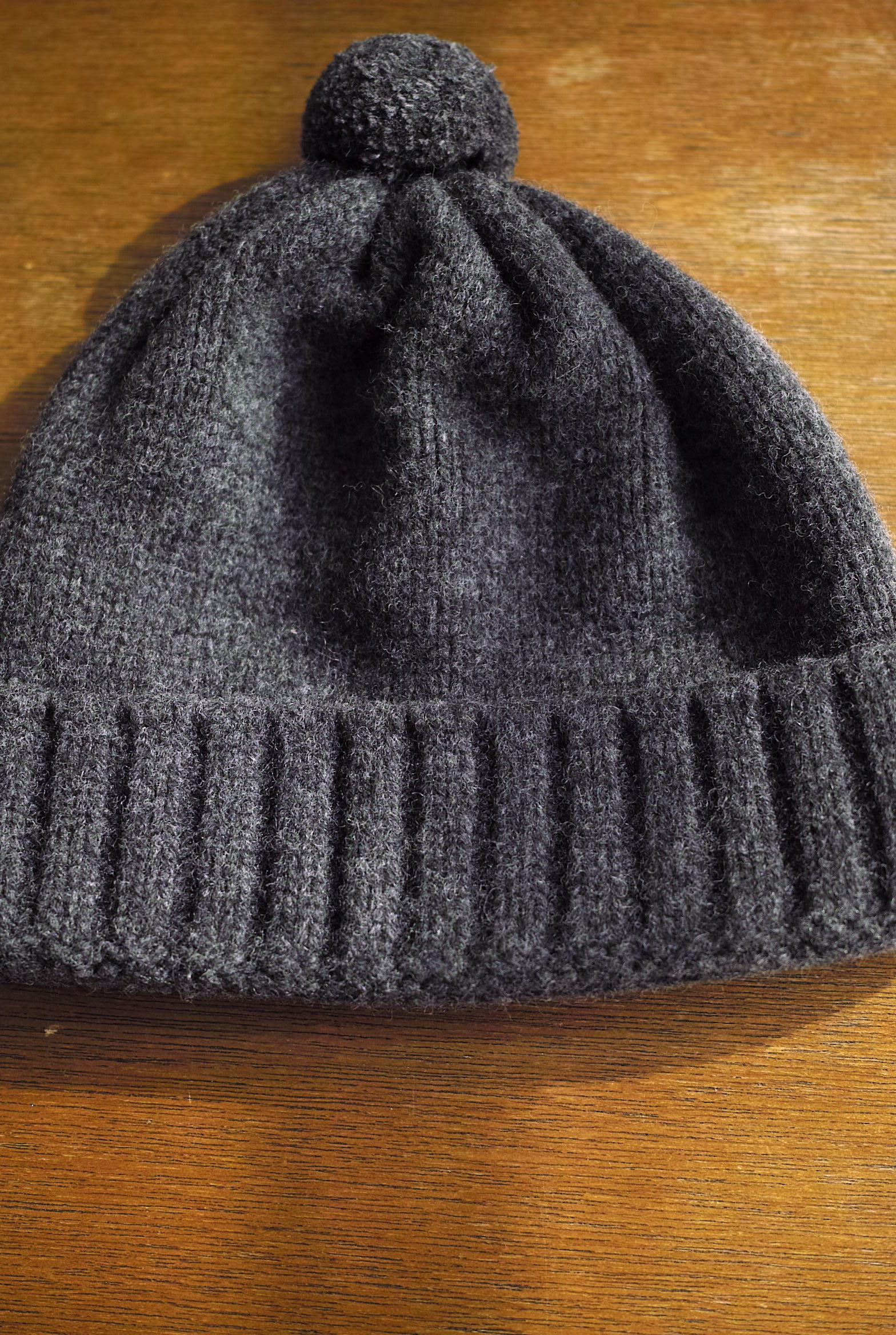 カシミヤ混のラムズウール糸を使用したニットキャップ、非常に風合いが良く弾力のある糸質が特徴です。