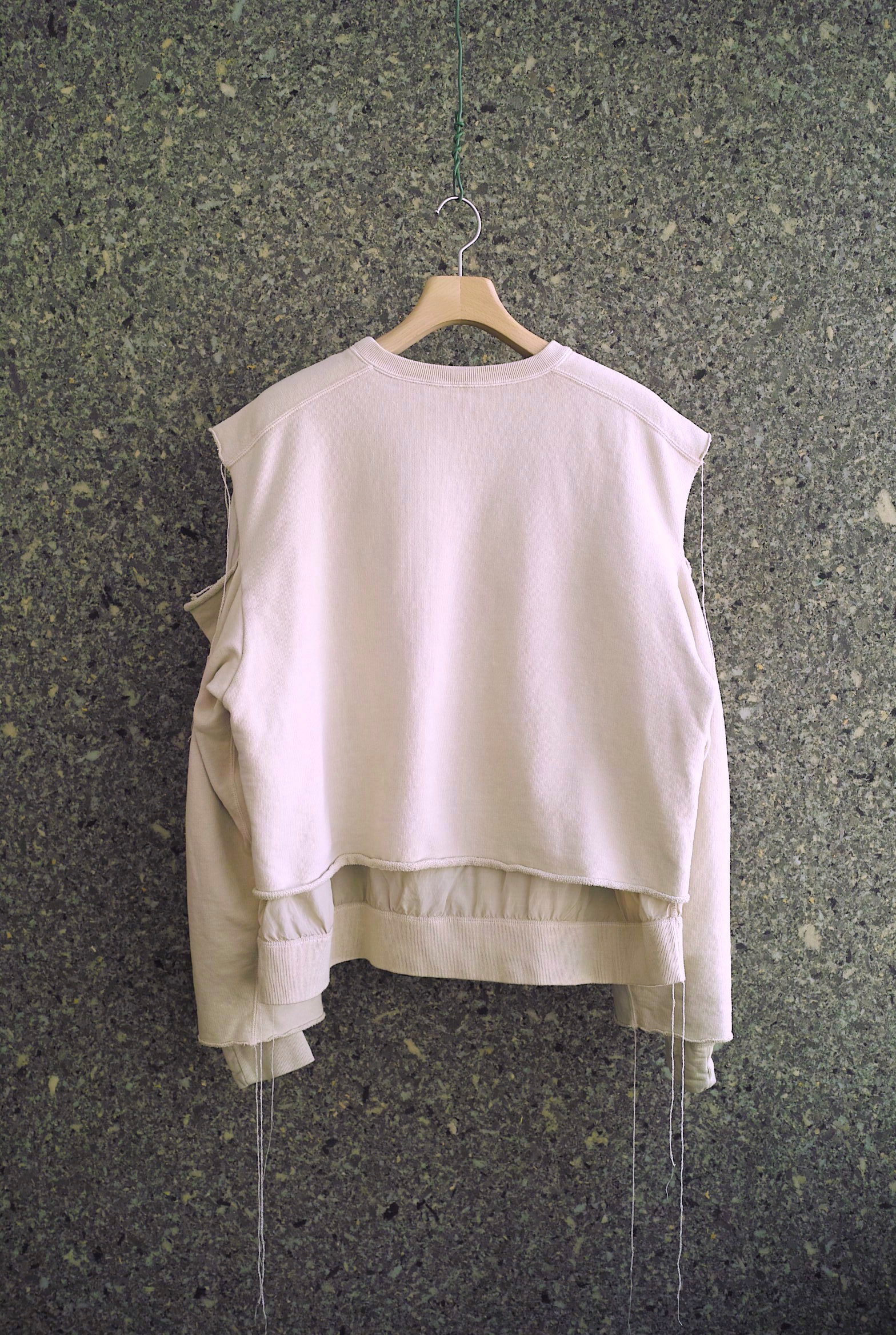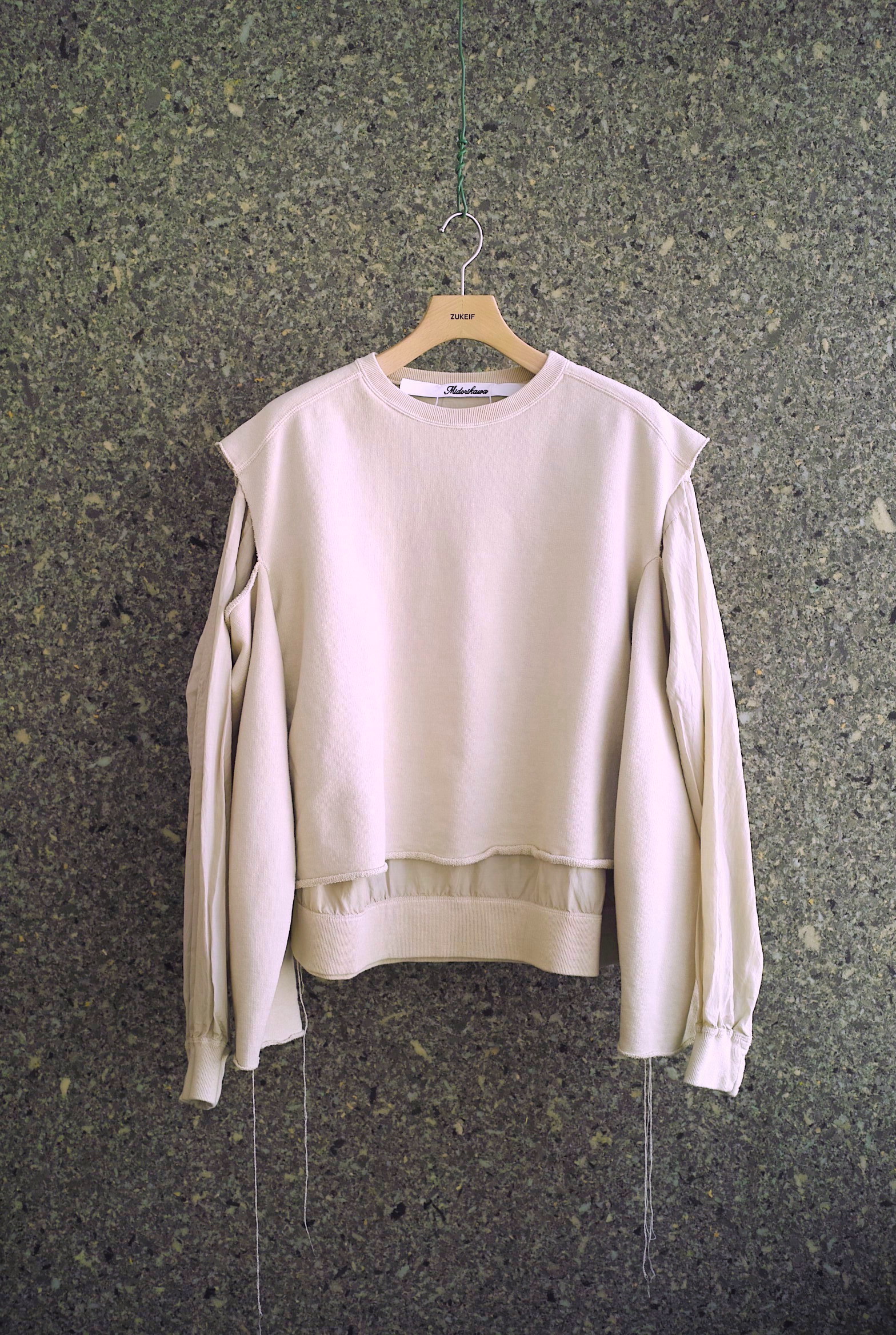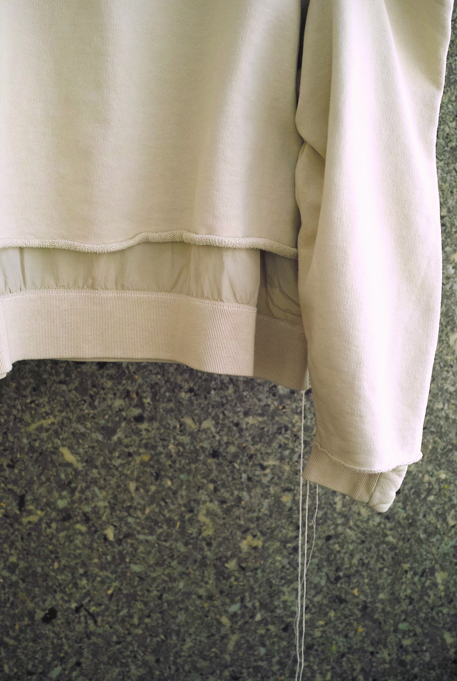 スウェットと薄手のレーヨン混生地がレイヤリングされたスウェットシャツ。久々のモデルです。