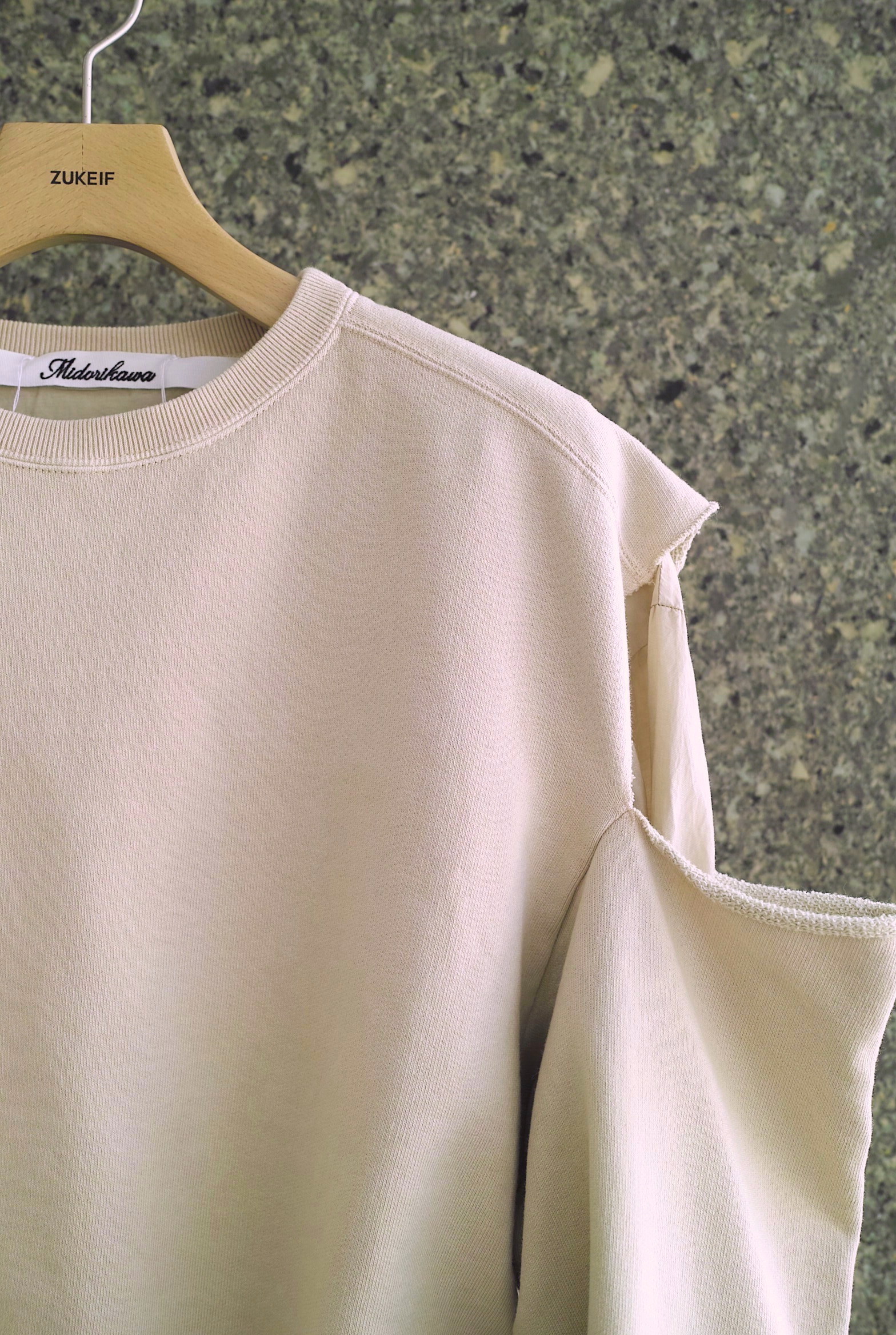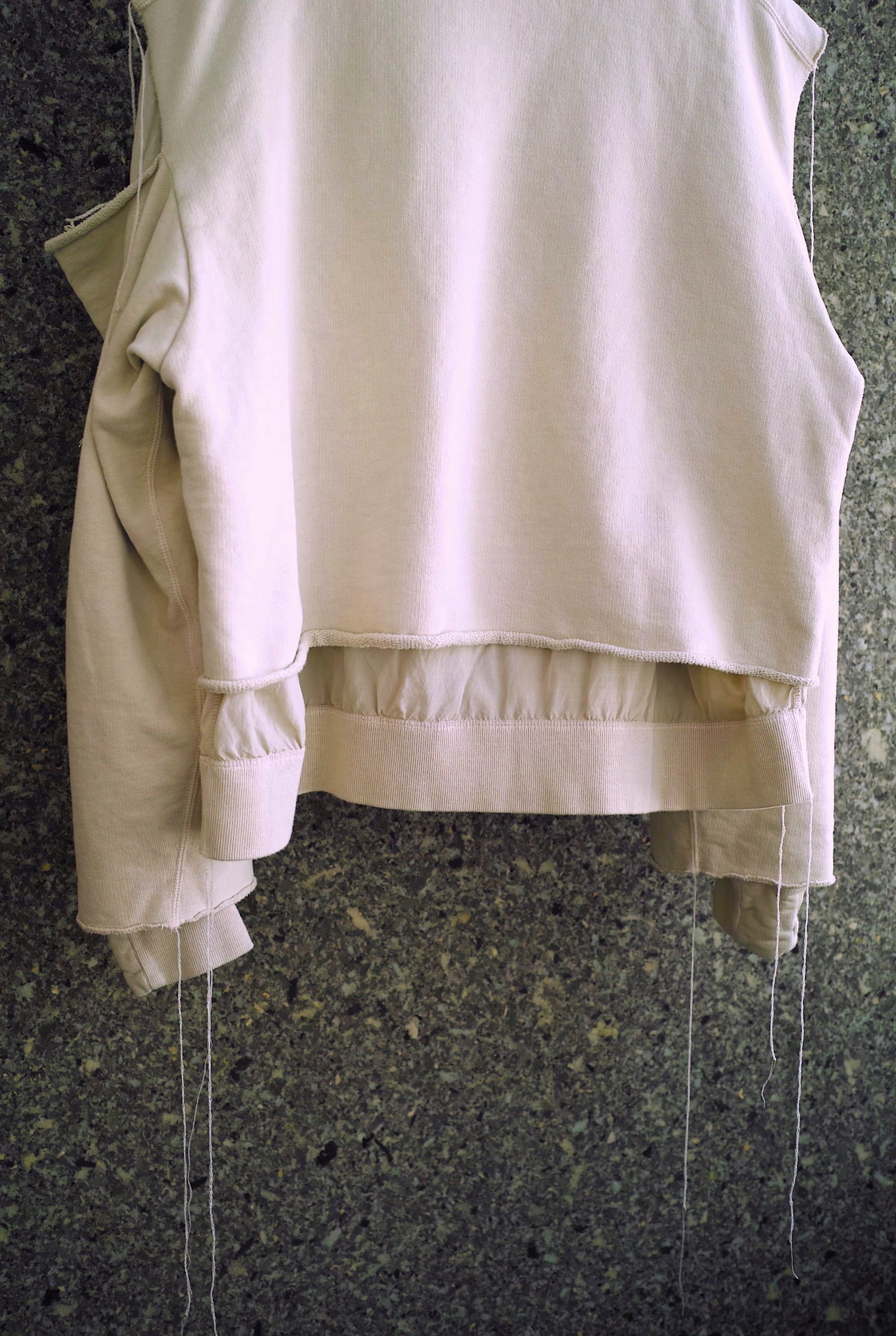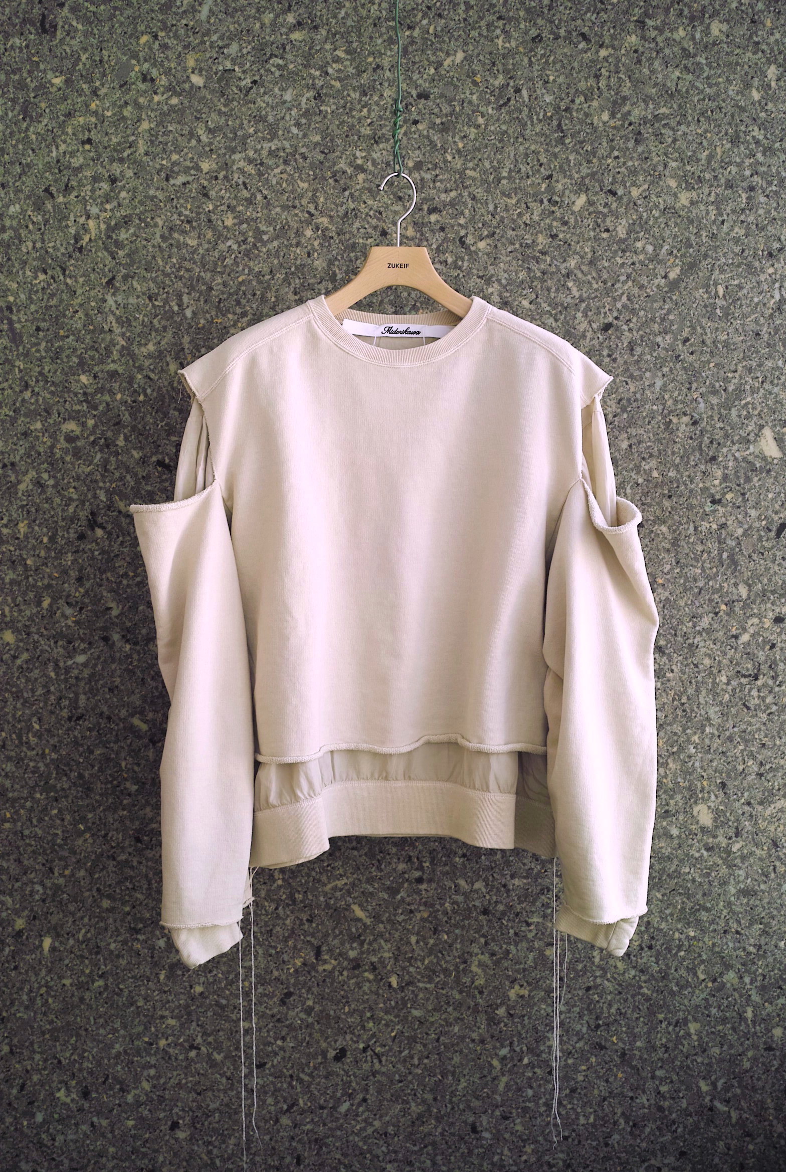 スウェットと薄手のレーヨン混生地がレイヤリングされたスウェットシャツ。久々のモデルです。