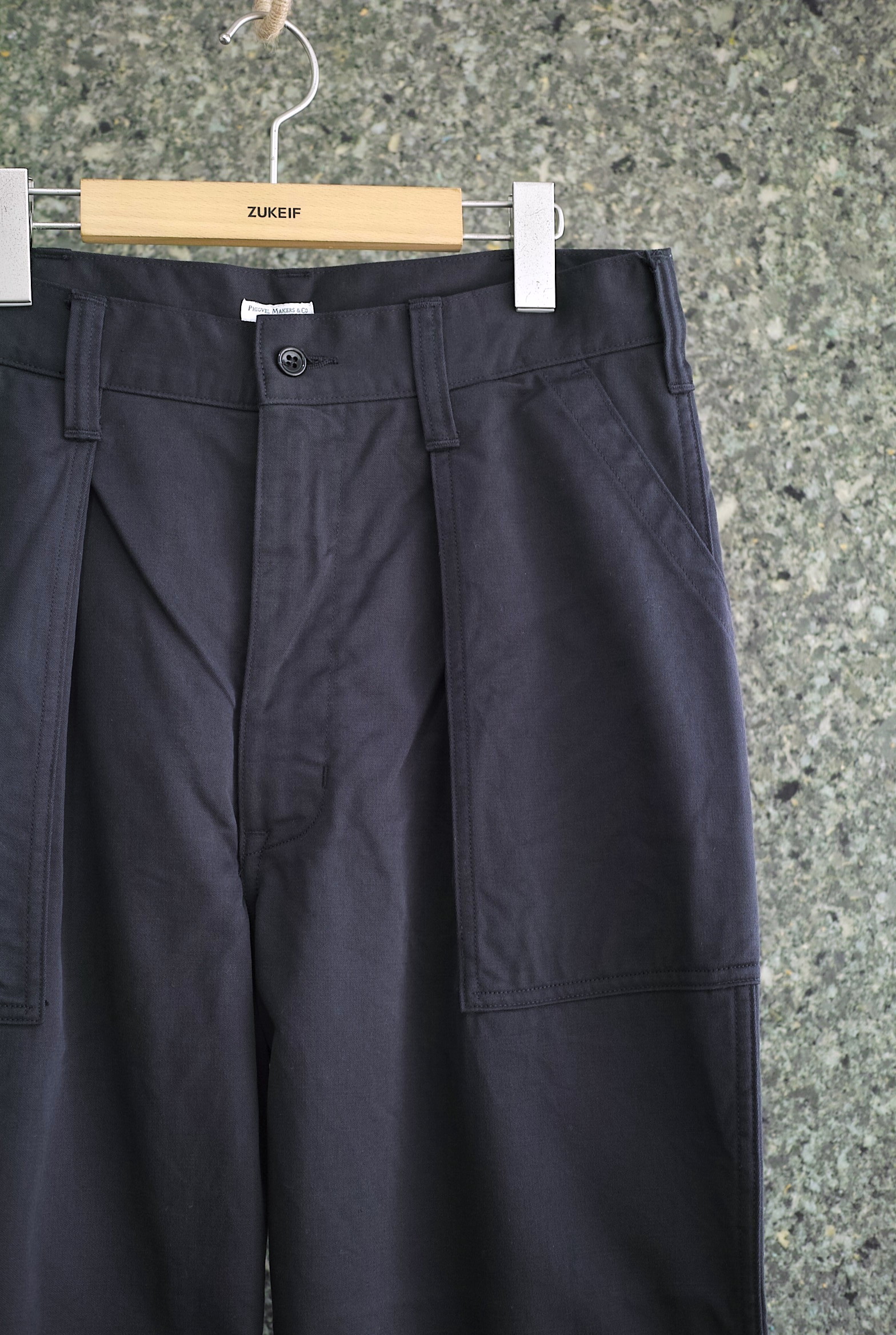 シーズン毎にリリースされているPHIGVELのフライトパンツは、立体的な綺麗なシルエットとガシガシと穿き込めそうなタフなイメージが絶妙で、ただの再構築とは思えない素晴らしいパンツに仕上がっているかと思います。