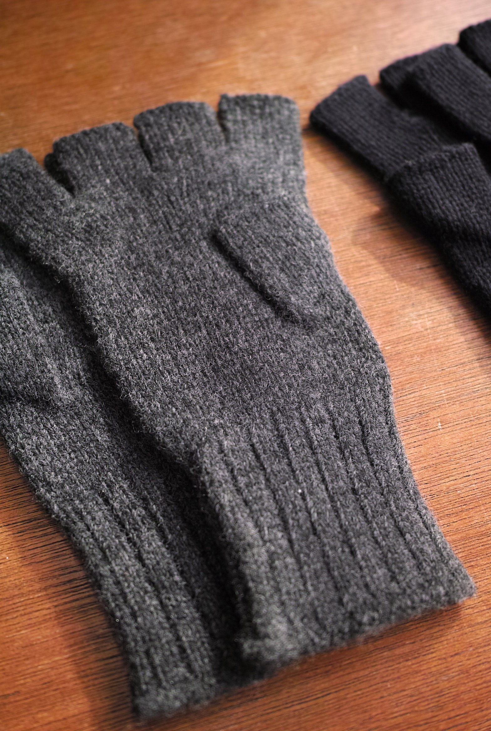 カシミヤ混のラムズウール糸を使用したニットグローブ、非常に風合いが良く弾力のある糸質が特徴です。 ~~~~~~~~~~~~~~~~~~~~~~~ BODY:95%-FINE LAMBSWOOL 5%-CASHMERE COLOR:CHARCOAL,B.NAVY サイズ感のイメージや素材の事など、お気軽に電話/メールにてご相談ください