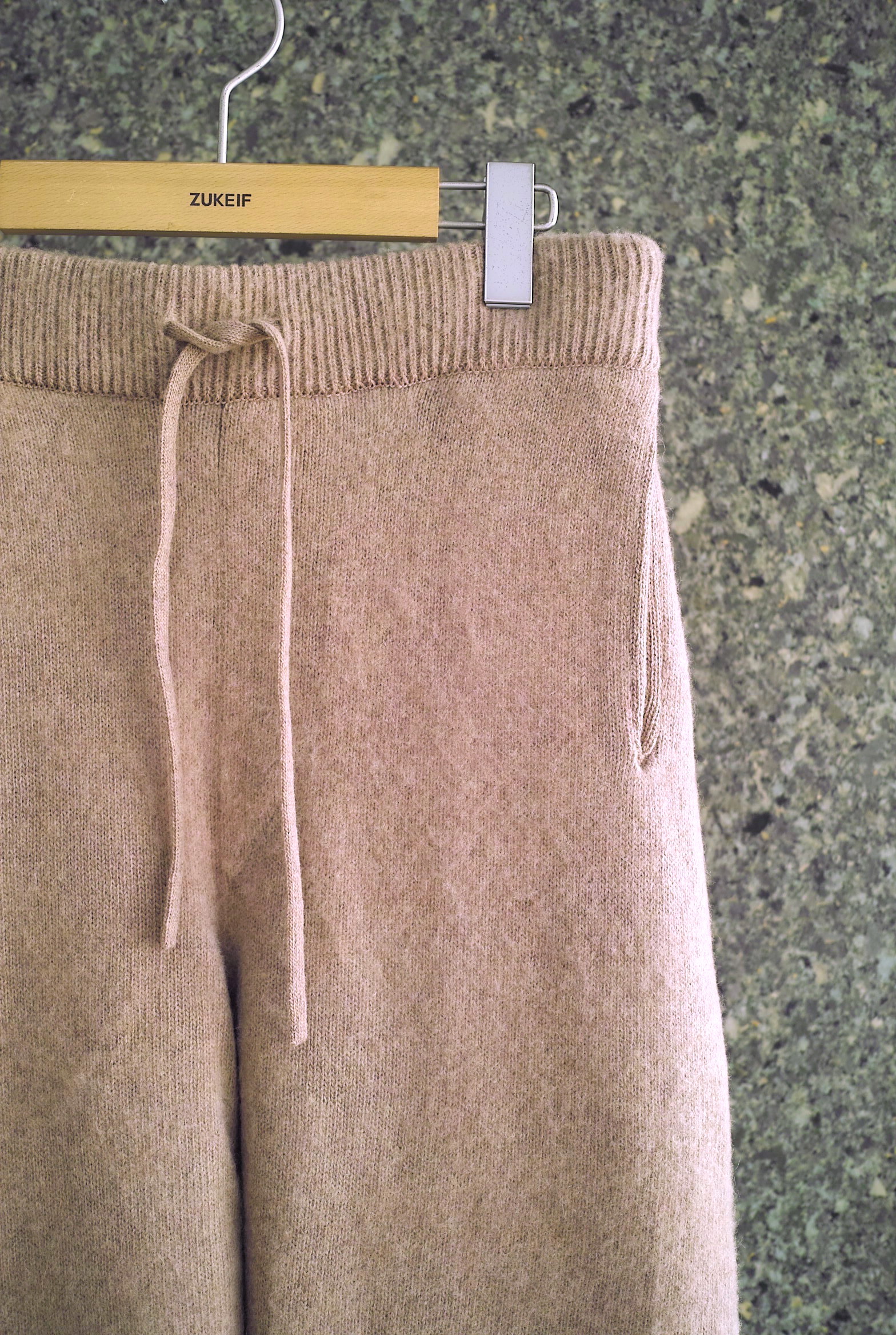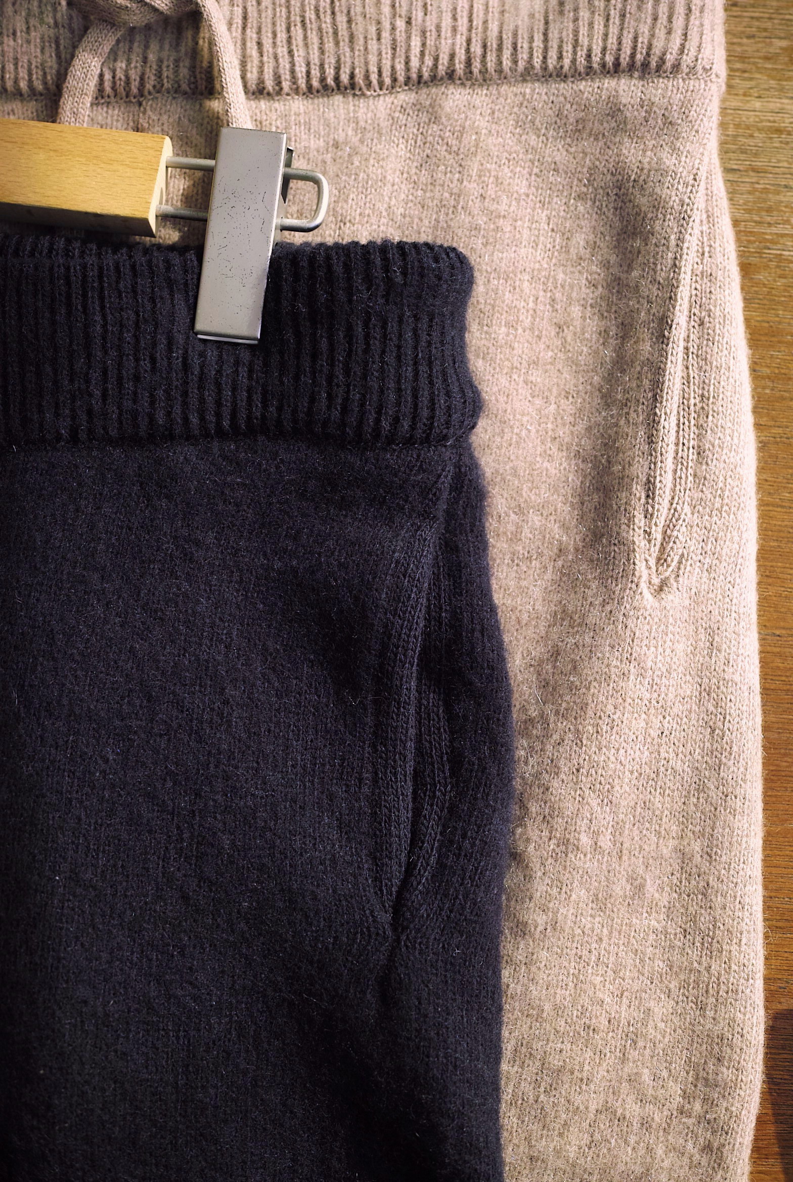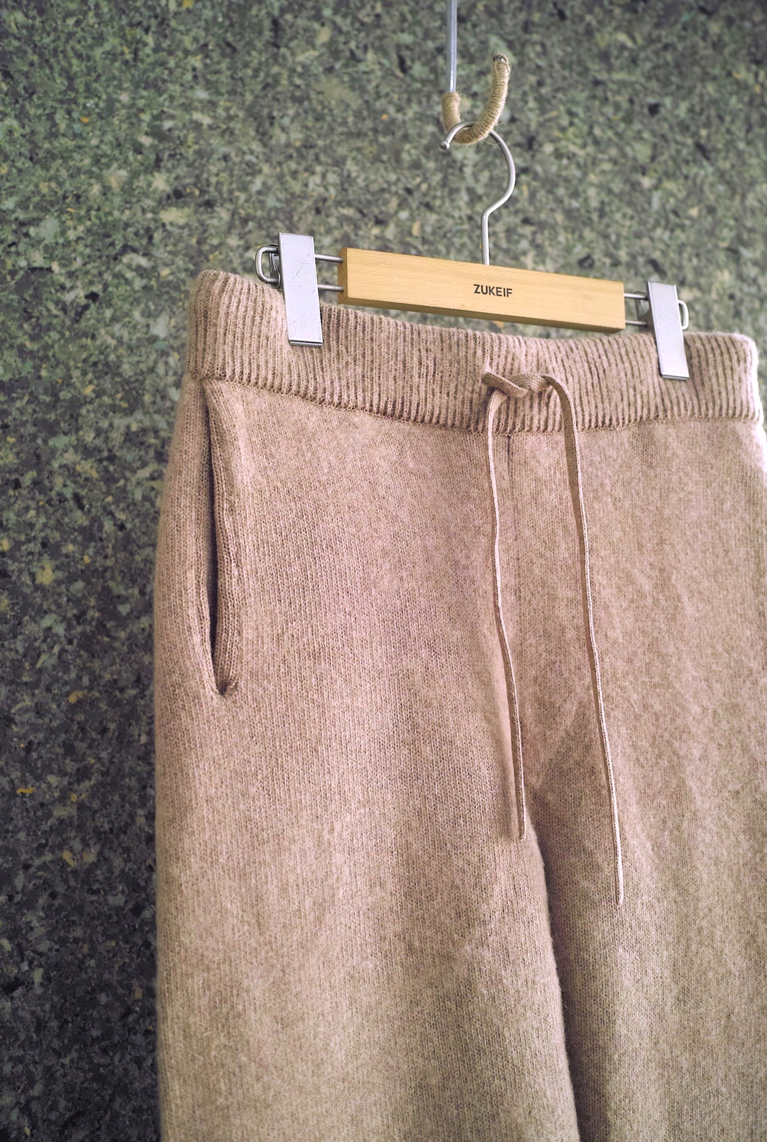 カシミヤ/ウールを使用したニットパンツ。軽量で保温性が高く肌触りの良いタッチが特徴。