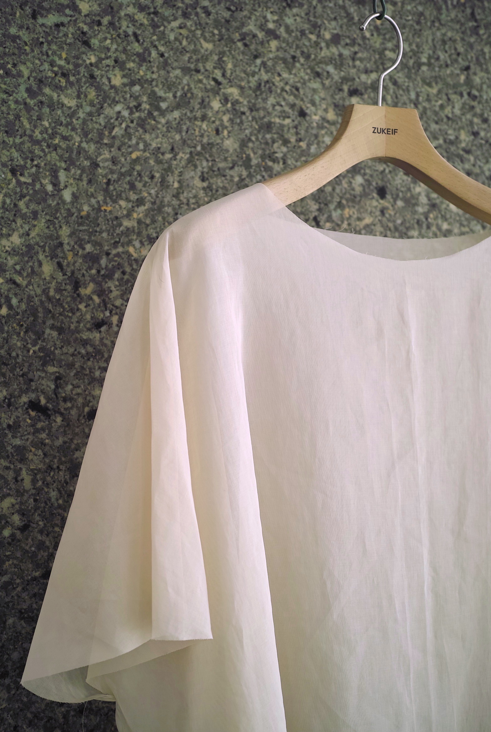 シャツの上からレイヤードするオーガンジーのプルオーバーもセットになります。