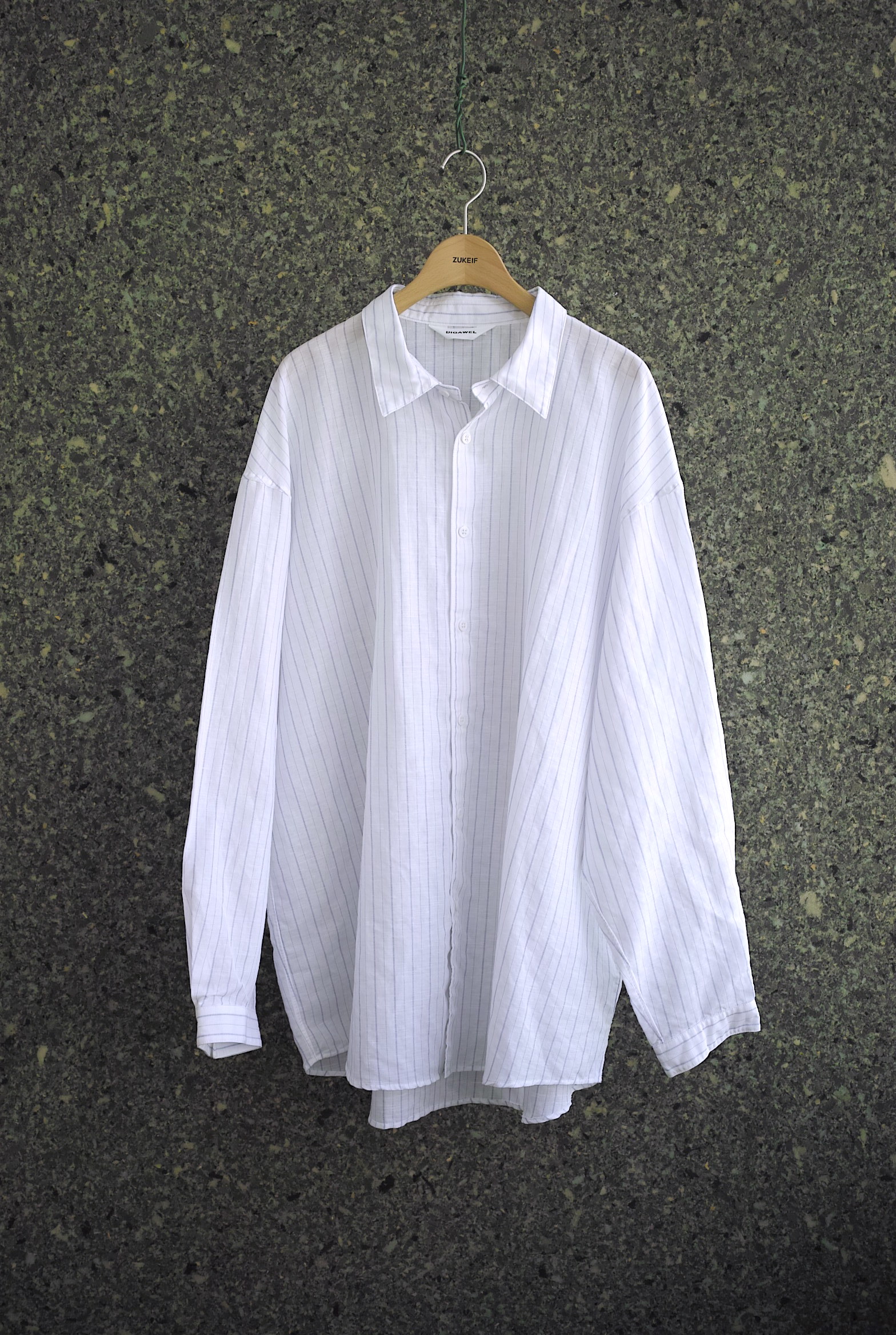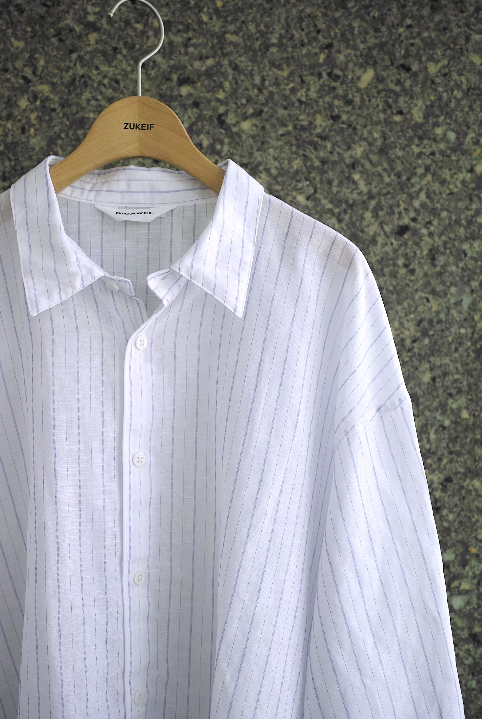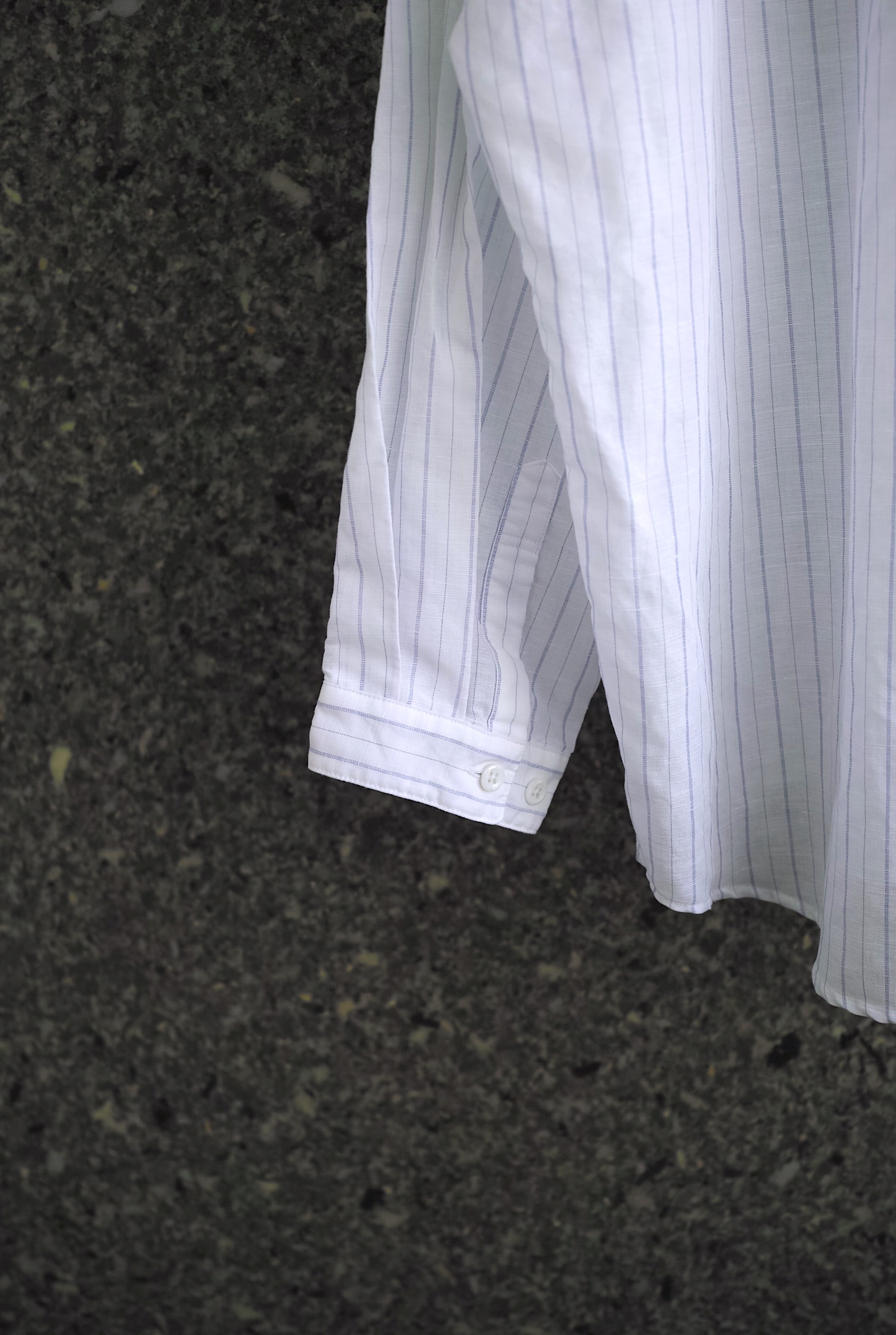 ここ数シーズン継続しているオーバーサイズの形を落とし込んだリネンストライプシャツ。