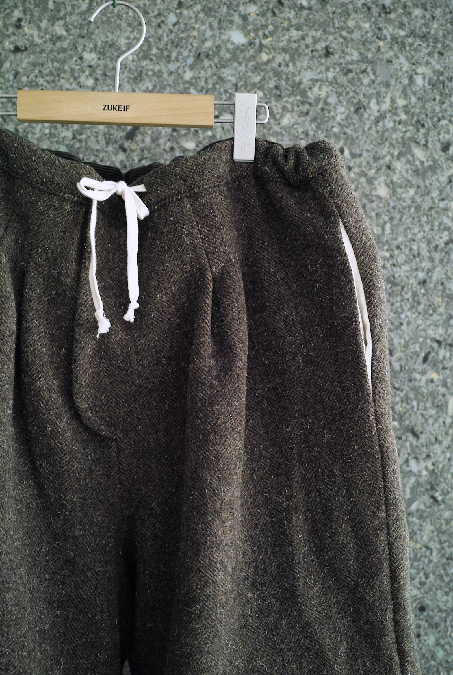静岡/天龍社で織られているコーデュロイ×愛知/尾州産のケンピウール、オリーブカラーの2つの生地がリバシーブルになったハーフパンツ。 この2つの生地は生産過程の揉み込み洗いがとても大切で、柔らかい上に生地の風合いが豊かに現れています。 ウエスト108cmと大きな分量をぎゅっと寄せて穿くイージー仕様、ロングホーズに合わせたり、パンツの上に穿くレイヤードも良いですね。 色落ちしたデニムや違う色のコーデュロイのパンツなどとの合わせが面白そうです。 ~~~~~~~~~~~~~~~~~~~~~~~ CORDUROY:80% COTTON/20% LINEN TWEED:100% WOOL COLOR:OLIVE サイズ感のイメージや素材の事など、お気軽に電話/メールにてご相談ください