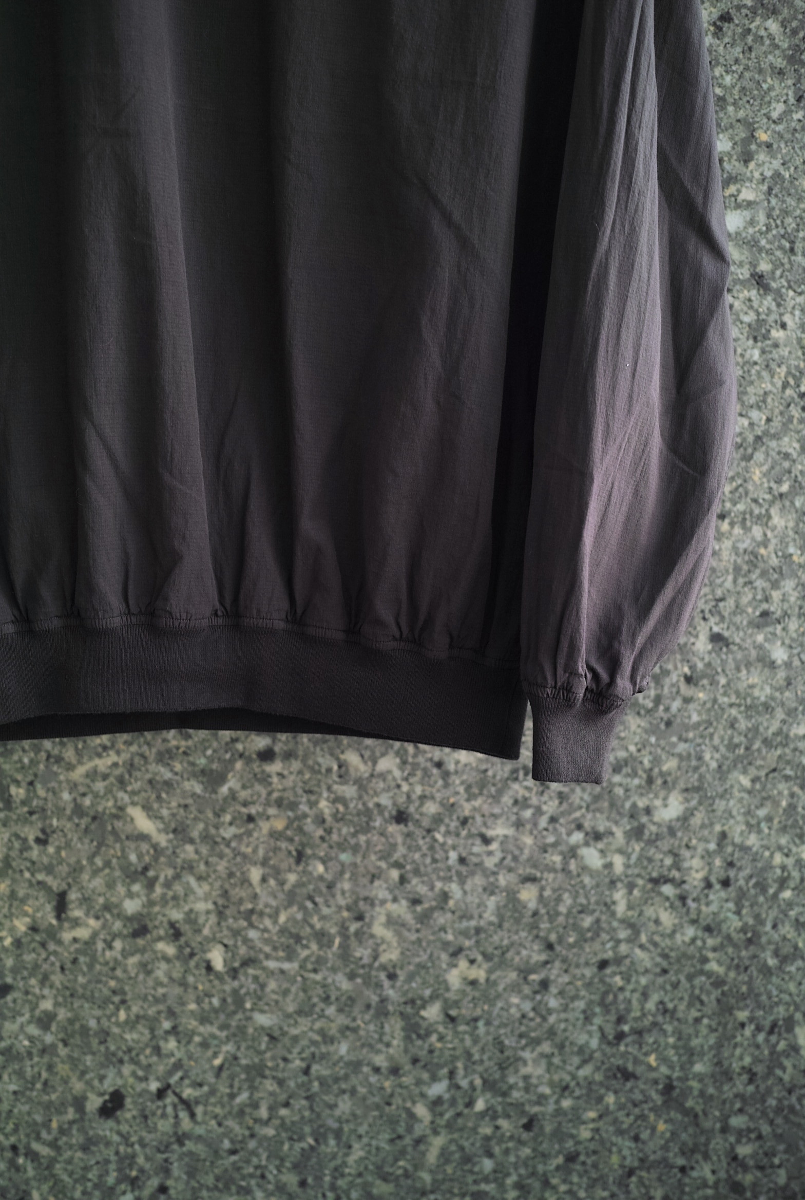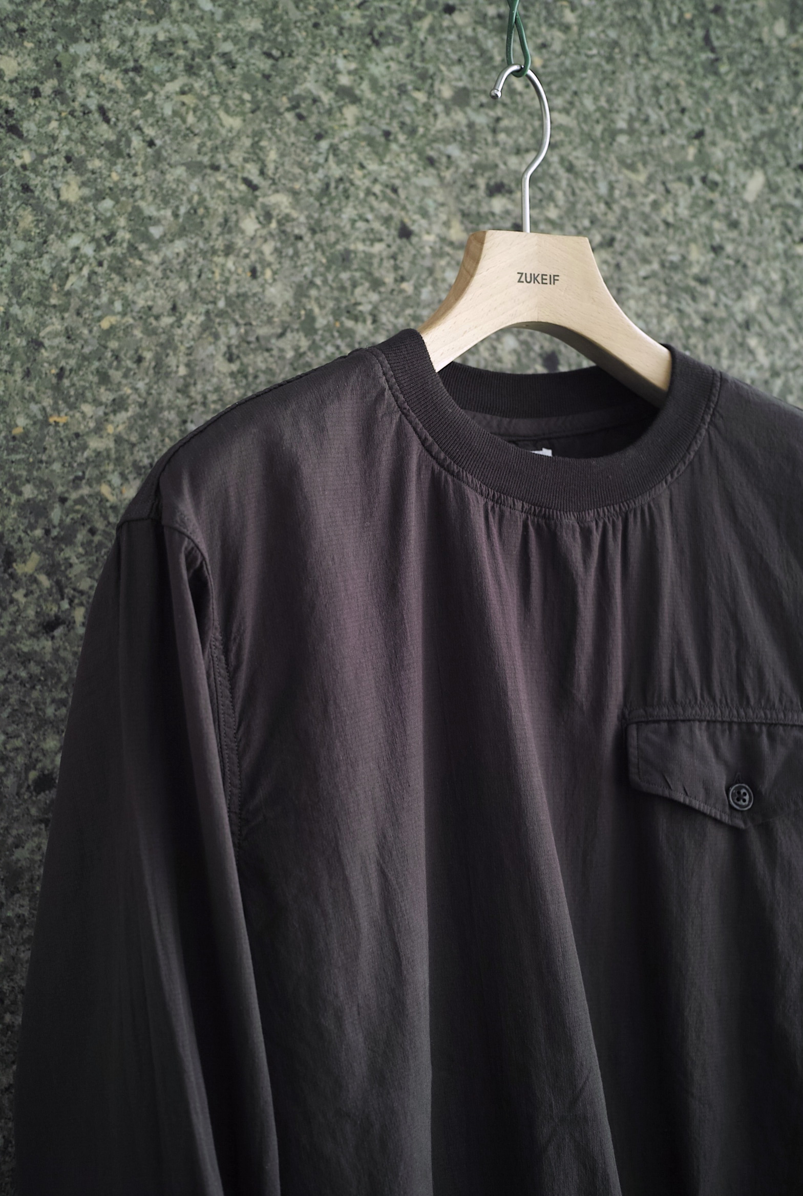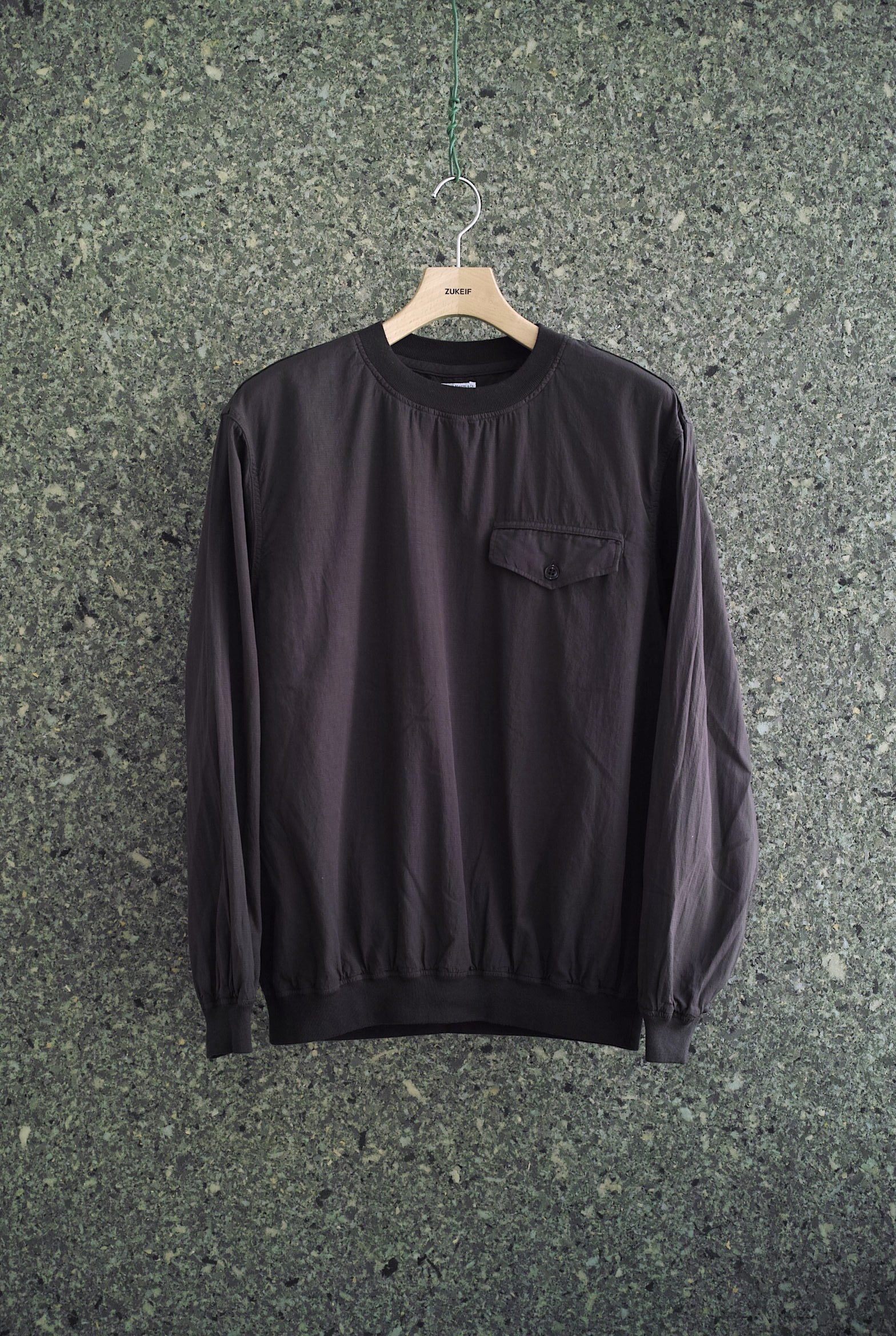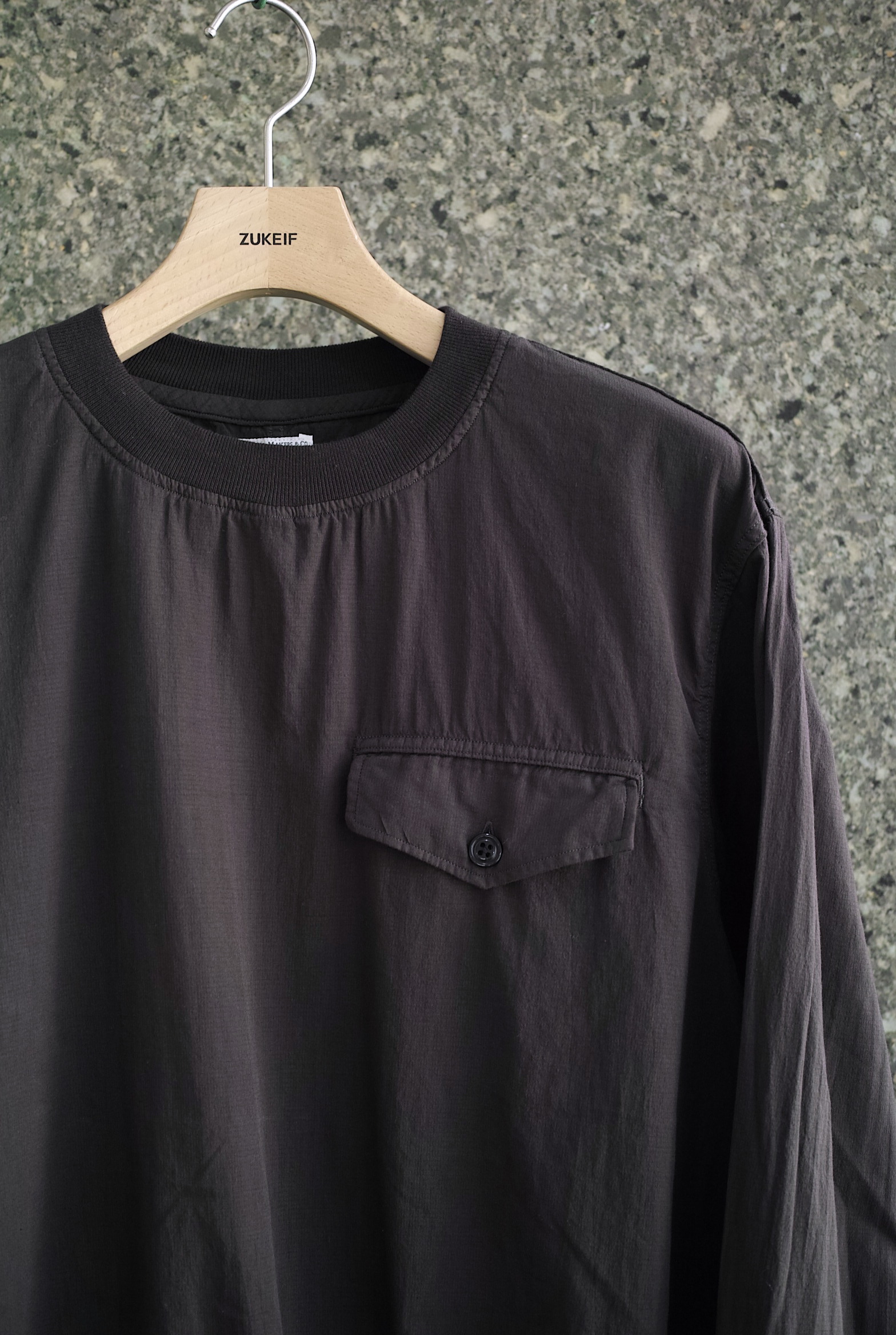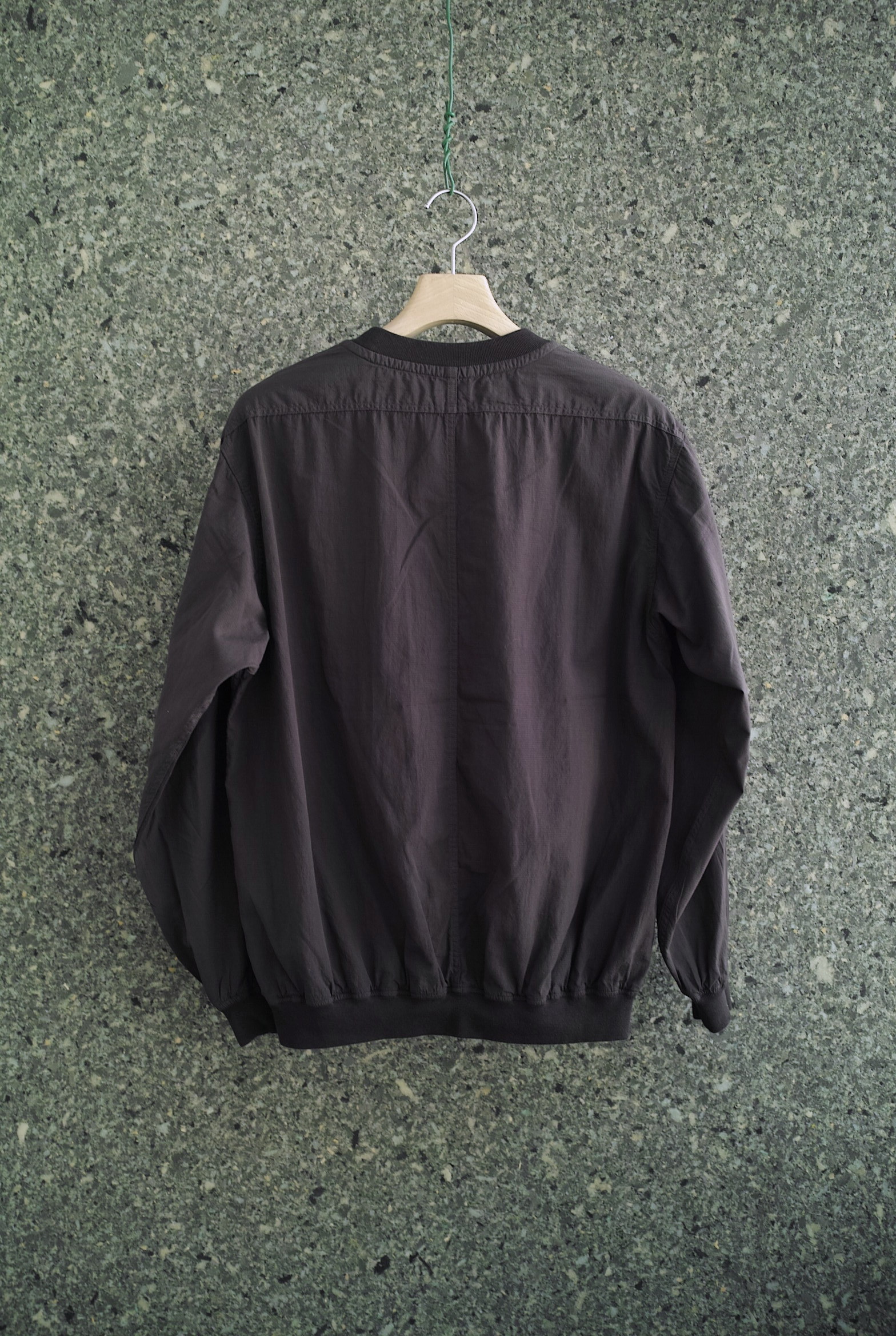 胸のフラップ付きのポケットが印象的なプルオーバースモック。 薄手のナイロンシェルのイメージをコットンで置き換えて制作されたマイクロリップストップ。 とにかく薄くて軽い質感とコットンの優しい肌触りは、暑くなっても快適に過ごせそうです。 ~~~~~~~~~~~~~~~~~~~~~~~ BODY:100% COTTON COLOR:GRAPHITE サイズ感のイメージや素材の事など、お気軽に電話/メールにてご質問ください。