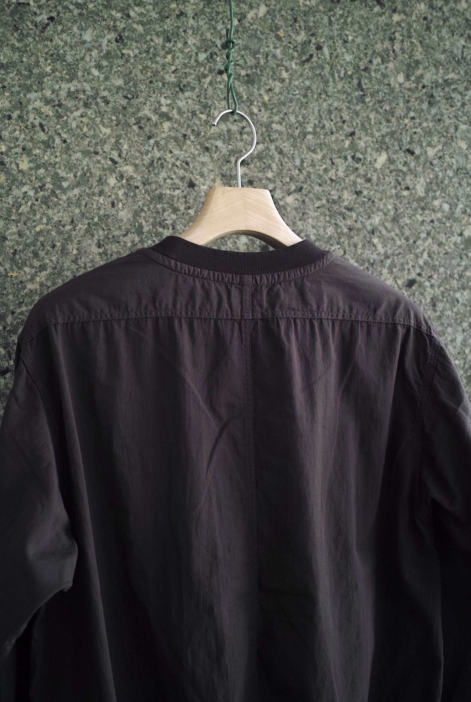 薄手のナイロンシェルのイメージをコットンで置き換えて制作されたマイクロリップストップ。
