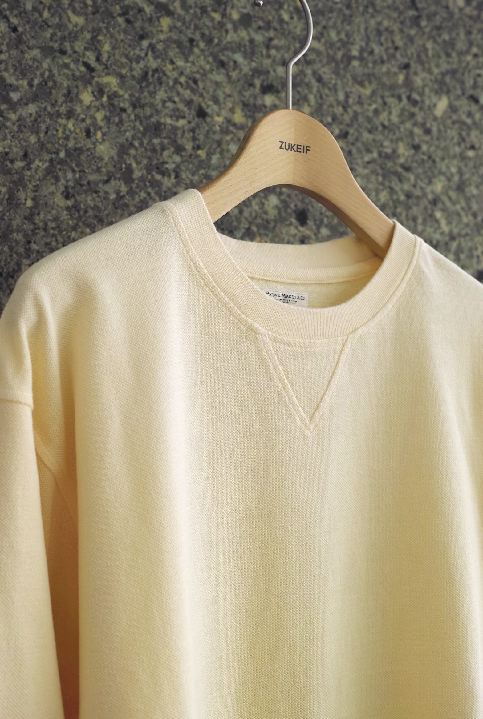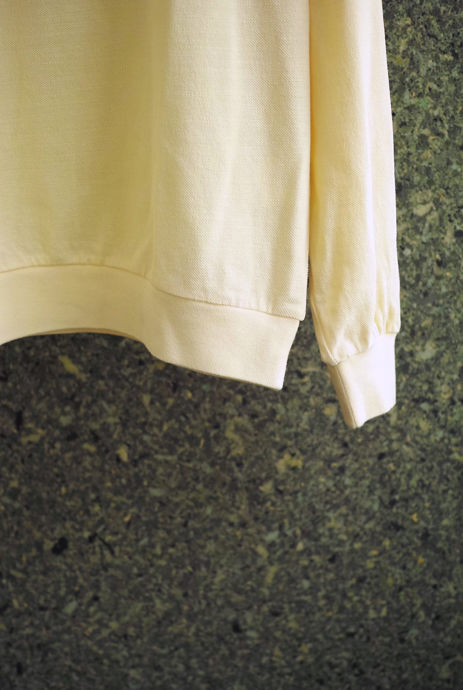 空紡糸を使用して編み立てたPHIGVELオリジナルの鹿の子生地。薄手です。 清涼感と通気性に優れ、暑い夏までスタイリングしていただけます。 昨年春の色違いのリリースで買ってくれたお客さんの評判がとても良かったアイテムでした。とてもおすすめ。 ~~~~~~~~~~~~~~~~~~~~~~~ BODY:100% COTTON COLOR:PALE YELLOW サイズ感のイメージや素材の事など、お気軽に電話/メールにてご質問ください。