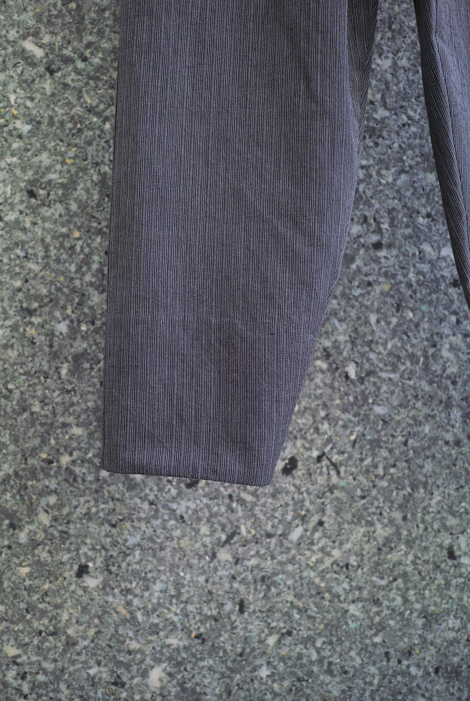 生地はイタリア”LYRIA社”のウール/ラミーストライプ、独特なシャリ感とドレープの美しい生地。